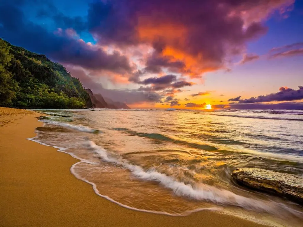 Part of Ha’ena State Park at the end of Highway 560 (the end of the road on the North Shore), Ke’e Beach is one of the most beautiful Kauai beaches for swimming. That’s partly because Ke’e Beach is so close to the spectacular Na Pali Coast. The lagoon-like sandy beach is also very beautiful with its crystal clear waters. As an added bonus, a small coral reef offshore offers some great snorkeling. Swim out to the left side of the beach. It’s the ideal spot to see green sea turtles!