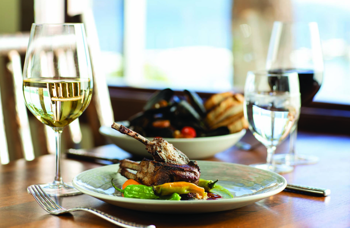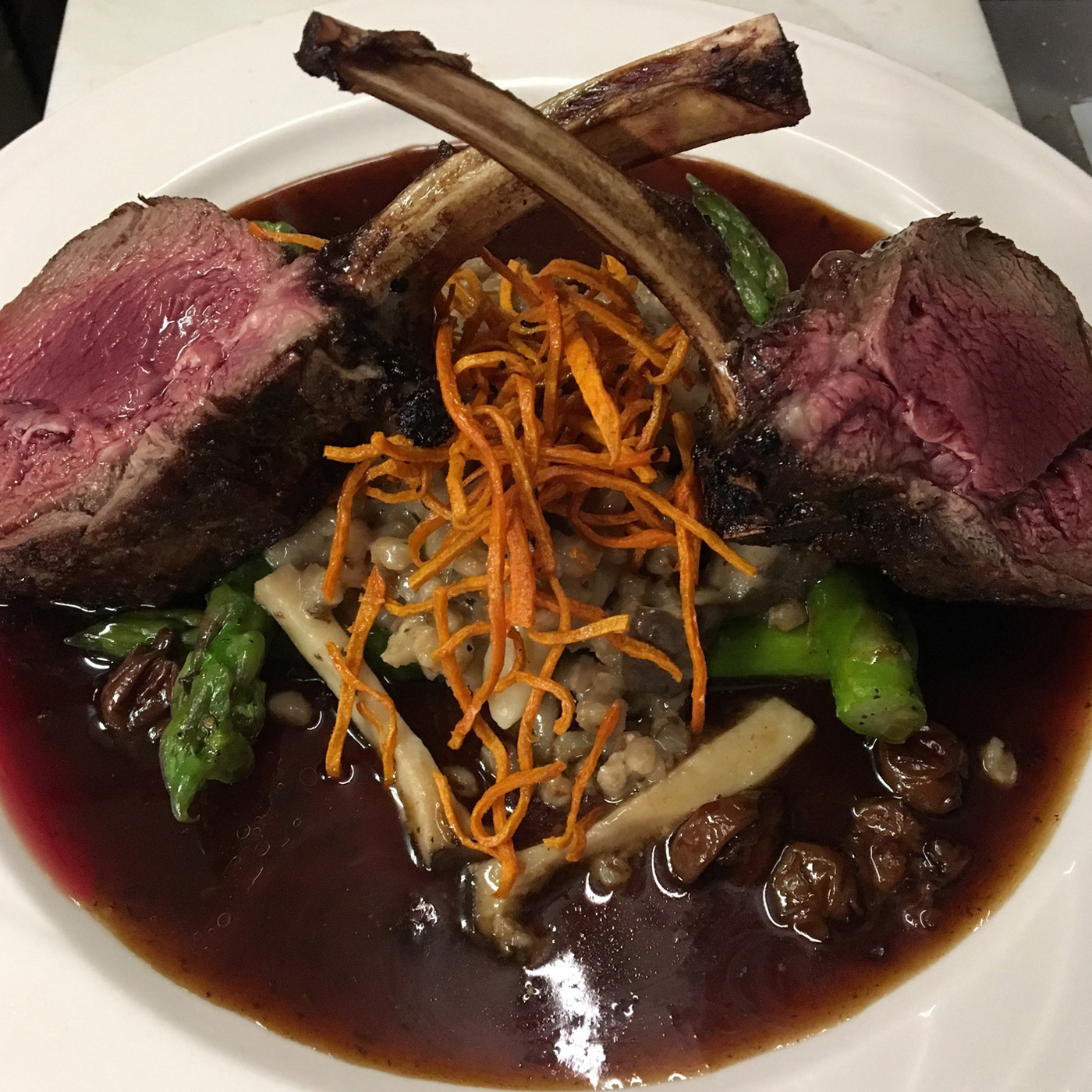 We recommend: For an appetizer, hoisin and orange glazed prawns or roasted quail stuffed with crispy duck sausage. For your main – roast venison loin chops with dried cherry-pinot noir bordelaise sauce, exotic mushroom farro risotto and asparagus or pan-roasted veal loin medallions with prosciutto, sage and mozzarella, marsala caper demi glace, mushroom risotto and sautéed spinach.