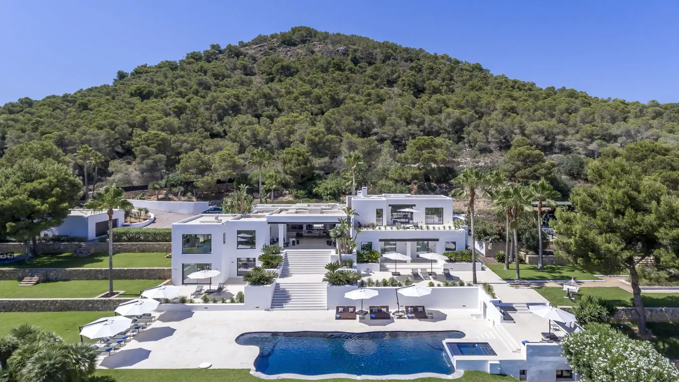 When staying in Ibiza, the epitome of luxury is Villa Can Nemo—a scintillating modern estate. It is in a secluded and tranquil neighborhood, boasting views of Balearic waters and surrounding mountains. The delicate beach glamor brings together contemporary refinement and postmodern exoticism. The combination of black trims and white-washed interiors awakens the feeling of luxury and cosmopolitan sophistication. This luxury vacation estate offers six immaculate bedrooms with access to spacious terraces for all its 12 guests, who can enjoy the seamless transition between indoors and outdoors through wide openings and sliding glass doors. Spectacular exteriors offer some delightful features, such as a heated pool with curving edges, a jacuzzi, and waterfalls. The stylish outdoor lounge and sunken seating spaces surpass the most prestigious beach clubs in the world.