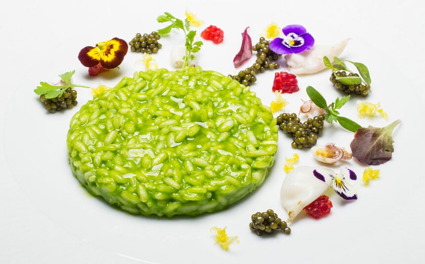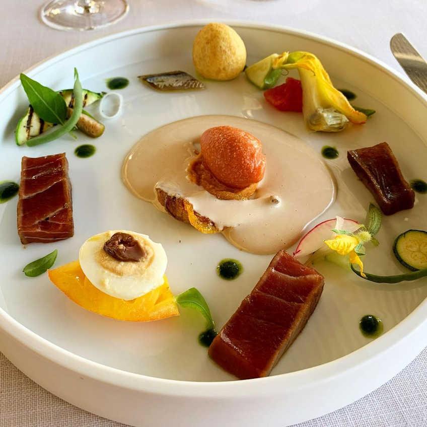 Our suggestion: The “Evolution” menu, where you will be treated to delicious Italian cuisines such as almond and celline olive soup, bergamot eggplant, and juniper lobster; green vineyard snails, slightly spicy turkey and avocado salad and coconut sauce; Mora Romagnola suckling pig on a spit, eel cream in carpione and purple cabbage leaf with pepper.