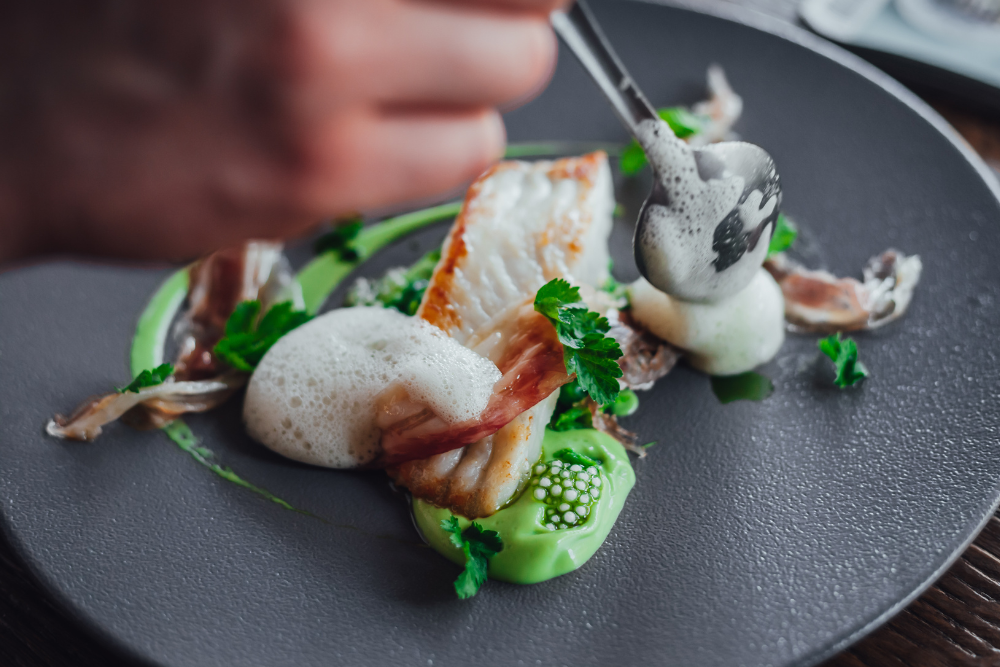 Tempting your palate: A must-try is the half-smoked salmon with caviar and avocado. If you’re fond of seafood, we recommend the caramelized black cod with miso sauce and bok choy. Meat eaters will enjoy barbecued lamb chops with Provence herbs, harissa sauce with sweet spices. Dessert must definitely be the decadent Tropézienne maison avec glace vanille – the house Tropez pie with vanilla ice cream.
