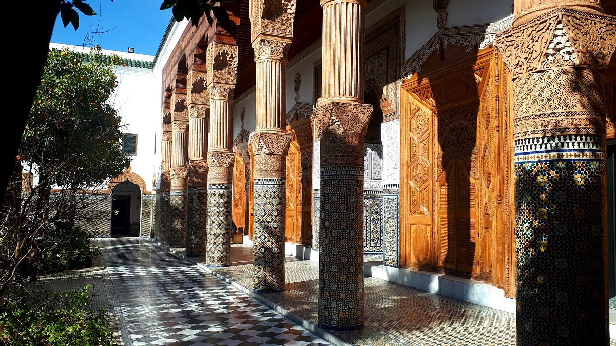 Abu “Bou” Ahmed was a slave turned vizier. He spared no expense constructing and decorating this gorgeous 150-room palace. There is no word other than, “wow” when you see the painted, gilded ceilings, polychrome zellige tiling and carved stucco! This palace – whose name is roughly translated as “beautiful" – is certainly that and then some. If you’re out and about, you can escape from the midday sun and head to the palace’s shaded areas and get lost in all the intricate detailing while cooling off.