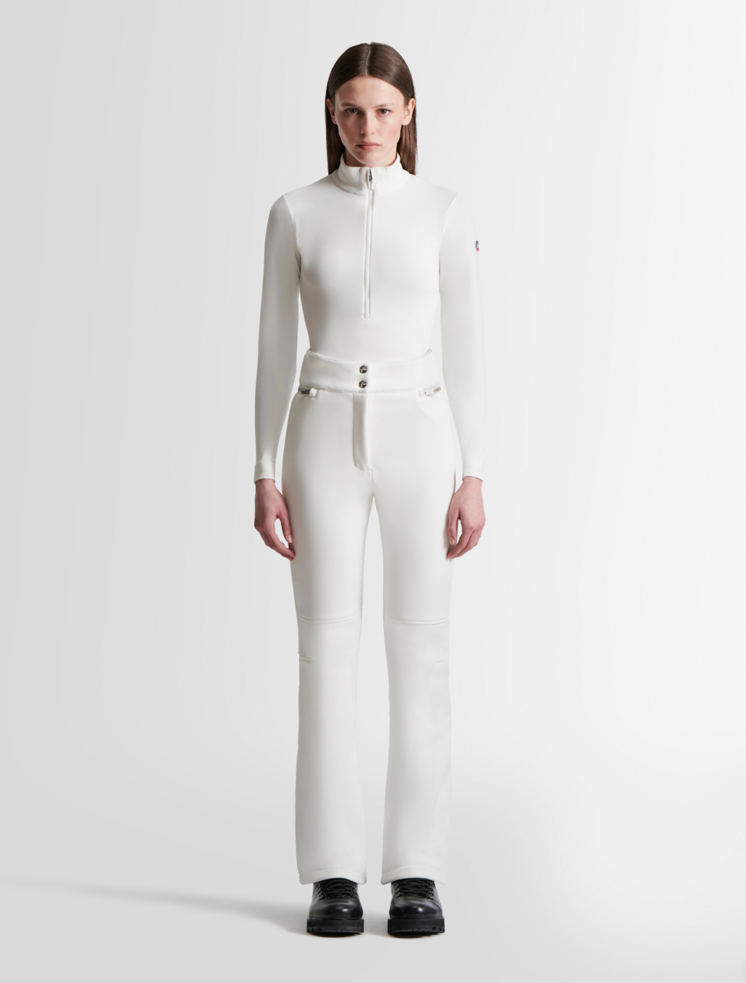 Elevate your ski wardrobe with the iconic Elancia Ii Fuseaufuseau Ski Pants ($740) from Fusalp. Designed to accentuate the silhouette with their high-waisted, fitted look, these pants combine style with functionality. Crafted from windproof stretch-bonded fleece Schoeller© softshell, they offer unmatched freedom of movement, making them a must-have staple for women hitting the slopes.