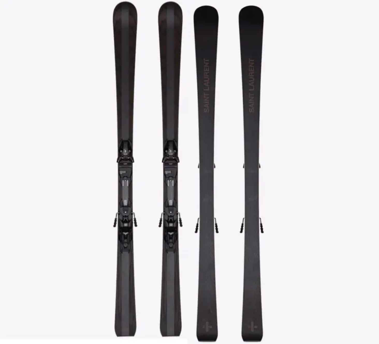 Experience the perfect blend of craftsmanship and performance with these 164cm skis, expertly crafted from rubber, ash, poplar wood, and titanate. At $12,500, these skis are designed for the discerning skier and feature a sleek black-on-black aesthetic that exudes sophistication on the slopes. The iconic Saint Laurent branding is elegantly inscribed on the bases, making these skis not just equipment but a statement of luxury and refinement.