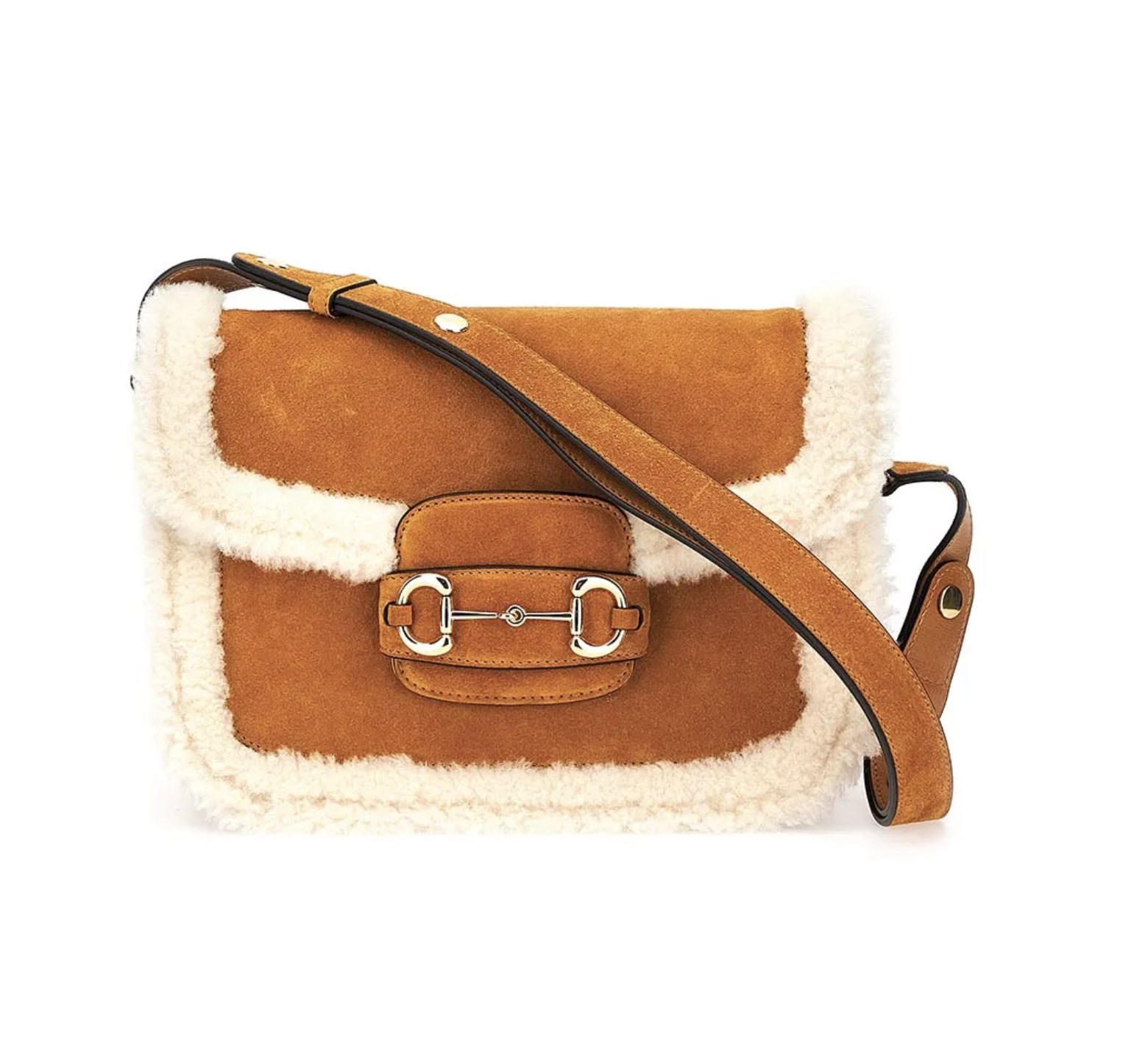 Elevate your après-ski style with Gucci's Horsebit 1955 suede and shearling bag. With its iconic Horsebit detail and impeccable craftsmanship, this bag ($ 3,790) effortlessly transitions from the slopes to the lodge, adding a touch of luxury to your winter ensemble. Embrace the essence of alpine chic with the Gucci Horsebit 1955 suede and shearling bag and make a statement wherever your après-ski adventures take you.