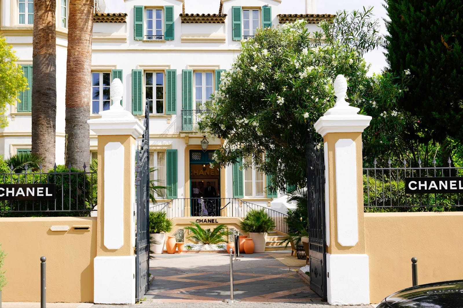 Journey to the La Mistralée villa in Saint-Tropez, which houses the seasonal CHANEL boutique. The interior of the villa blends the brand's signature aesthetics seamlessly into its warm Mediterranean ambiance. On the inside, this holiday-home-like boutique features beige tones highlighting pinky-beige walls with touches of black and white, evoking Gabrielle Chanel's signature colors. The vestibule showcases accessories on a Goossens table beside a wing chair, while the double salon features a fawn velvet banquette reminiscent of Chanel's own sofa. Alcoves displays the latest beachwear designs and accessories from the brand’s latest collections. On the outside, the veranda, veiled in white curtains, offers a bright yet intimate space with glass clothing rails showcasing the season's ”it bags." The garden, adorned with bougainvillea and wrought iron furniture, invites you to take a second to relax from browsing the shelves and to take in the cool summer breeze. Nearby, a salon in white linen allows clients to try on shoes displayed in the pool house, mirroring the villa's Mediterranea aesthetic.