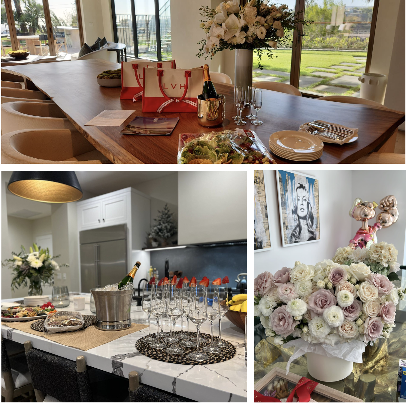 Your exquisite journey begins when you step into an LVH home. A welcoming ceremony greets you, featuring a meticulously curated charcuterie board, champagne, and a fresh bouquet to signal the start of your luxurious retreat. Behind the scenes, an impeccable field manager orchestrates a seamless symphony of operations and maintenance, ensuring that every aspect of your stay is flawless. Their presence is discreet, primarily off-premises, and they remain on-call around the clock, stepping in only when needed or upon request, resolving any issue with unmatched efficiency to guarantee your experience unfolds splendidly, exceeding your highest expectations.