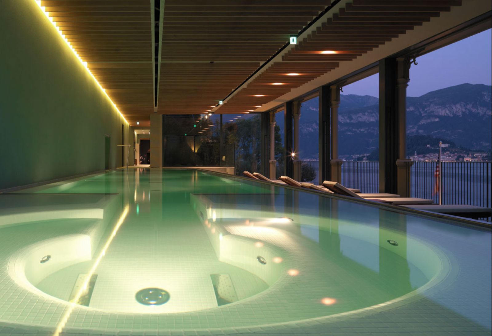 which includes a Mediterranean bath, steam bath, sauna with stunning Lake Como views, and an ice fountain.