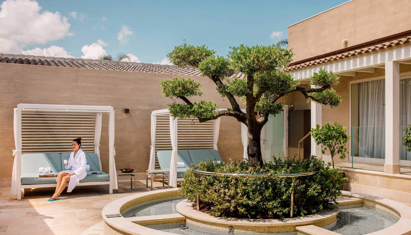 The spa architecture effortlessly merges with its surroundings, utilizing natural elements and rustic-chic aesthetics to elevate the tranquil ambiance. Borgobrufa Spa is a wellness temple designed to regenerate both body and mind, helping you rediscover profound sensations and authentic emotions. This exclusive sanctuary offers diverse rituals, private spa experiences, and complete mental and physical rejuvenation treatments.