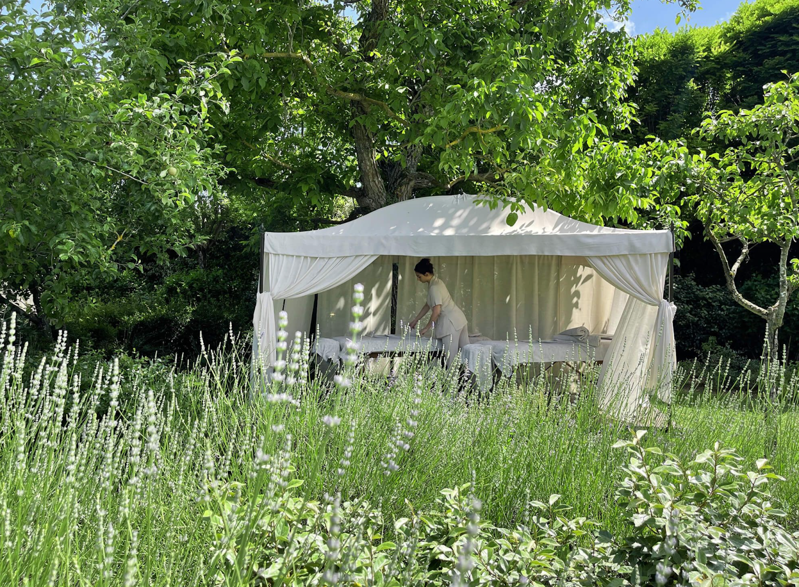 For those seeking treatments amidst nature, curtained therapy beds are available in the spa gardens, allowing guests to enjoy their therapies surrounded by the serenity of the outdoors.