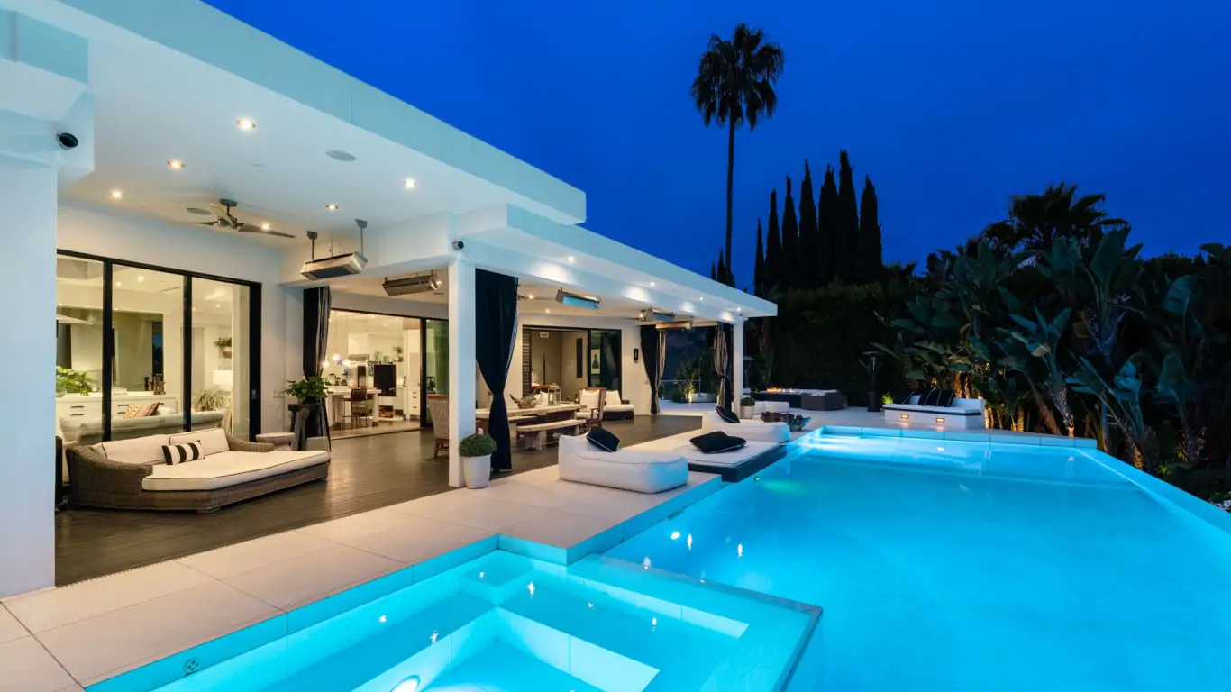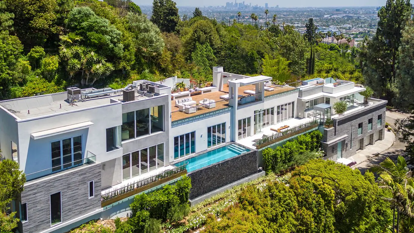 Step back from the urban LA life and unwind in the secluded Villa Sheena in Beverly Hills. This magnificent residency overlooks the city and delivers a majestic backdrop. Each of the 12 guests this villa welcomes can relax and enjoy the city views from the comfort of one of the six sumptuous bedrooms. The interior exudes high culture glamor and exoticism and greets distinguished guests with a free-flowing layout and double-height ceilings. Navigating from the entrance, you arrive at a glorious seating area adorned with a marble fireplace. The transparent glass walls gently invite the beauty of the outdoors to seamlessly blend with the chic interiors, creating a harmonious fusion of space. Exiting this splendid villa reveals an even more breathtaking scene: a magnificent infinity swimming pool and jacuzzi perfect for relaxing and soaking in the views and Californian sun.