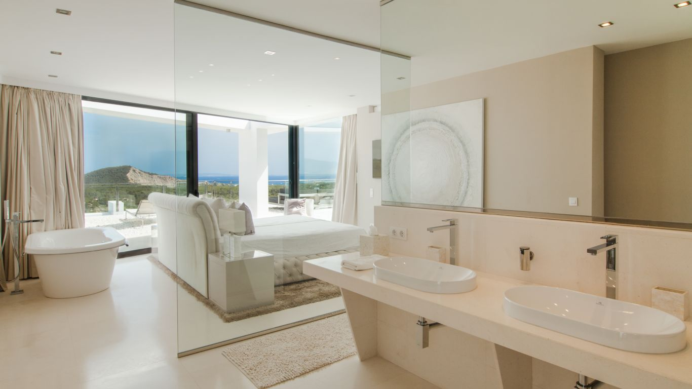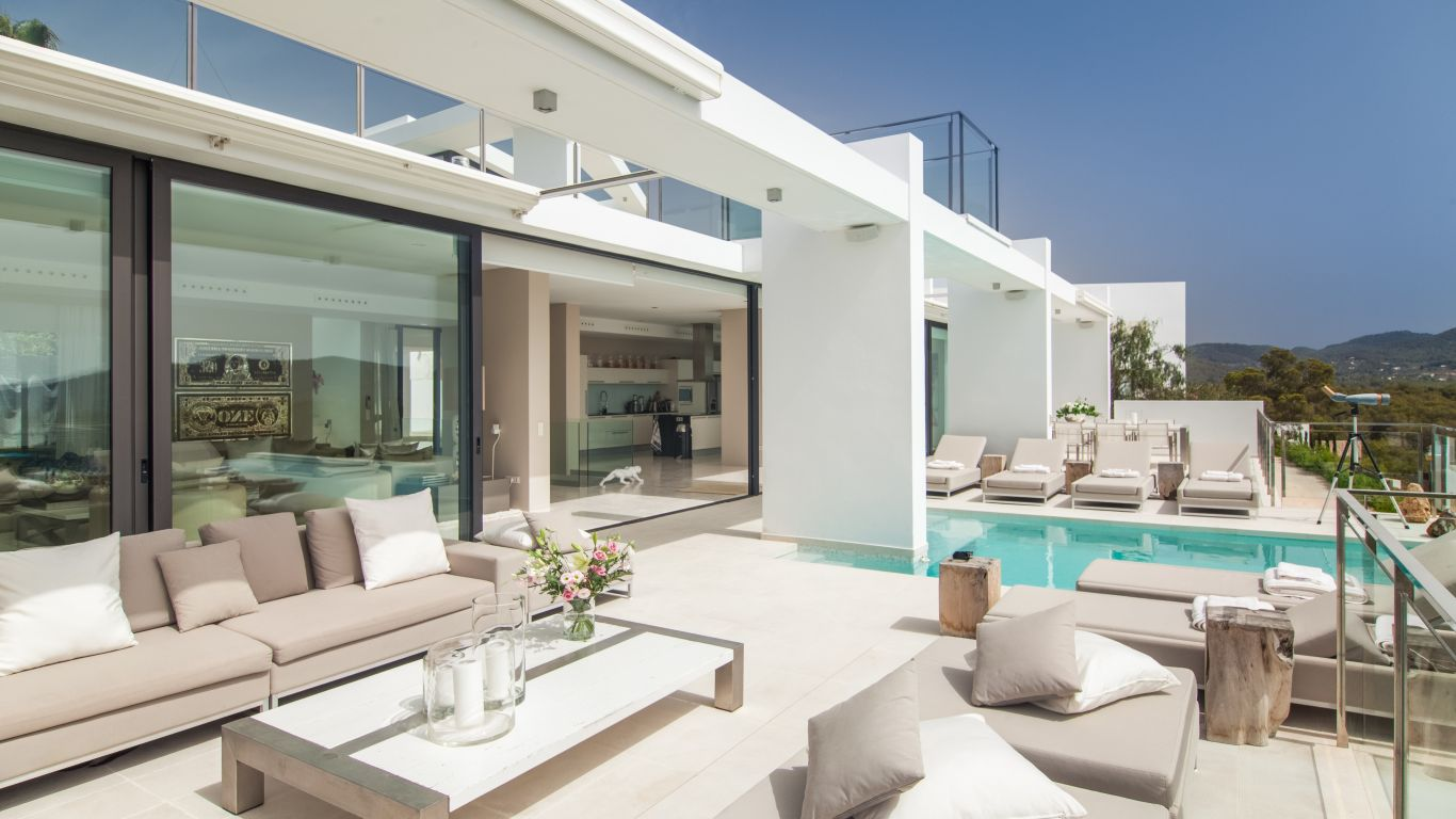 Our featured property, Villa Ishani offers a selection of amenities. With 5 bedrooms and 5 bathrooms, Villa Ishani is spacious enough for families to enjoy or for a group of friends. Amenities include a professional kitchen, en-suite bathrooms, air conditioning, stunning views from the terraces, outdoor area with a large terrace with BBQ, outdoor dining area and a number of fantastic chillout areas. This villa features spectacular panoramic views to the sparkling waters of the Mediterranean and the island of Formentera. For more information, press the button below.