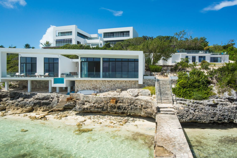 The modern estate of Villa Stark likewise promises a dramatic ambience. Situated along the oceanfront of Grace Bay in the Turks and Caicos, the villa is spread across four acres of majestic coastline, ensuring privacy and exclusivity for its guests. Comprising the main villa, yoga pavilion, and beach house, Villa Stark offers a bold vision of tropical lavishness against the natural beauty of the Turks and Caicos islands. The interiors showcase minimalist refinement, with pristine white spaces, expansive floor-to-ceiling windows, and sleek furnishings that marry form and function. With ten ensuite bedrooms, Villa Stark pampers each guest with style, comfort, and absolute discretion.