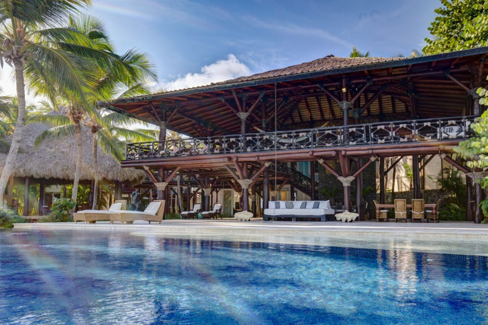 This estate blends bold luxury with rustic beach aesthetics and captivating Balinese architecture. Its interiors feature exotic plants, fine wood, bamboo accents, and intriguing sculptures. Southeast Asian and African decor elements come together harmoniously in the inviting living room, creating an ambiance that exudes vibrance and adventure while offering modern amenities. Each bedroom is a world unto itself, featuring double-height palapa roofs, glossy black wood floors, exotic archways, and Imperial door paneling that radiates sophistication. The master bedroom boasts a king-sized bed, a spacious bathroom, and a desk with stunning ocean views. With six ensuite bedrooms, Villa Las Hamacas offers versatile accommodations ideal for medium-sized groups and families.