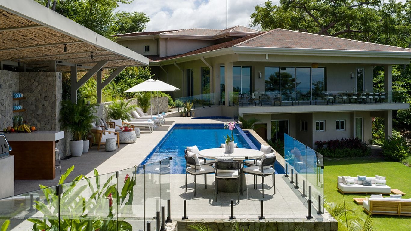 In Villa Pacifico – on the magnificent Papagayo peninsula of Costa Rica – you will find peace, privacy and grandeur. There is no better place to lay down your vacation roots than this Guanacaste luxury vacation villa which can accommodate up to 18 guests in absolute comfort. Glorious water views are only one enticing feature of this residence. Amenities include a cinema room, library, outdoor infinity pool and hot tub, along with a patio, lounge areas and a terrace for superb al fresco dining.