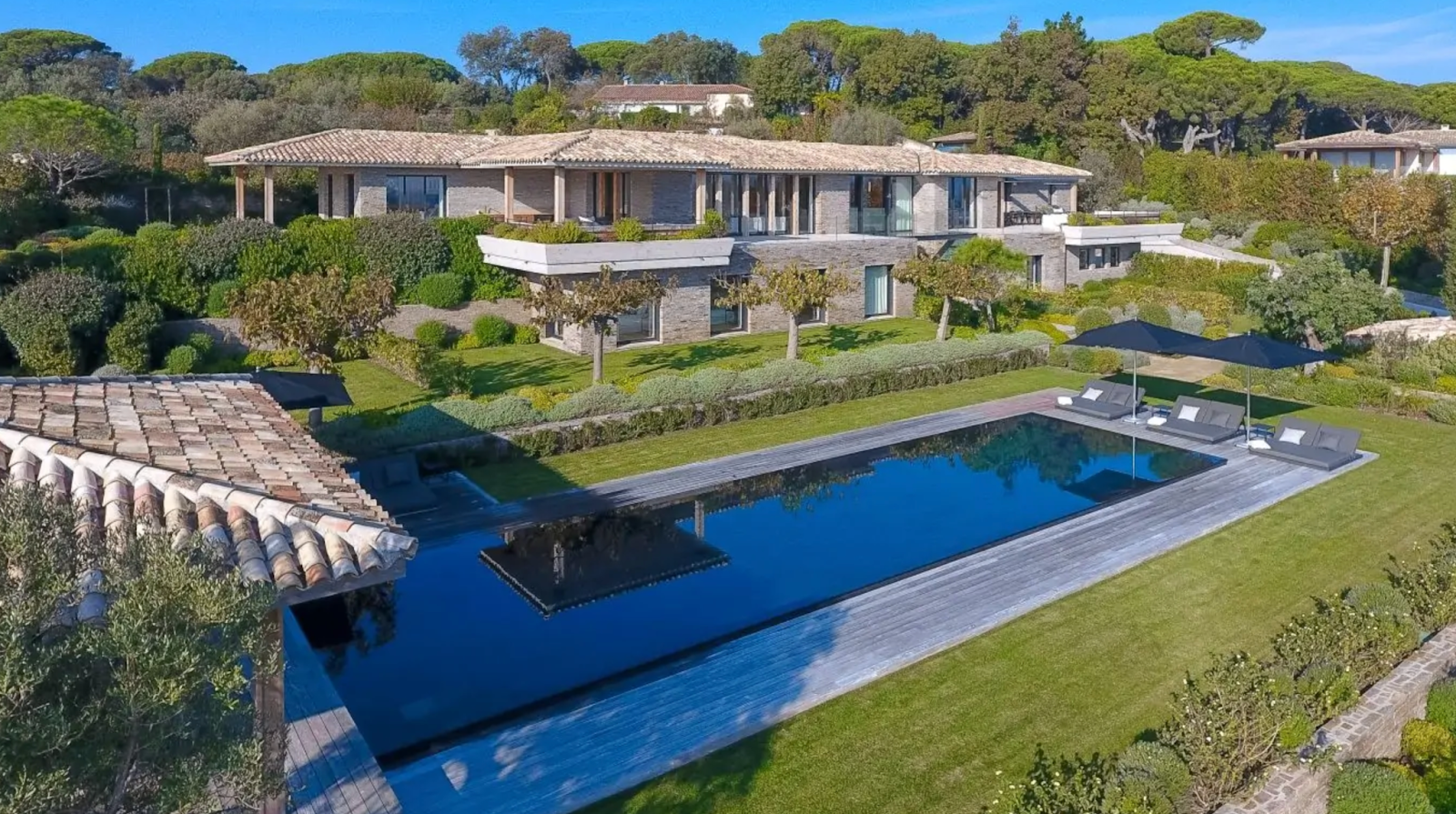 Villa Bellazard situated on the picturesque hills of St-Tropez, is an ideal retreat for relaxation and rejuvenation. Fourteen guests can unwind while enjoying the encompassing mountains and tranquil sea's panoramic views from the seven sumptuous ensuite bedrooms. The stunning interior flaunts sculptural double staircases upon the entrance. Warm wood details and Polynesian-style stools adorn the living space alongside white vaulted ceilings. A vital feature of this villa is a wellness area consisting of a hammam and a massage room. This vacation rental also offers a gym for fitness enthusiasts, who can later decompress in the glamorous swimming pool.
