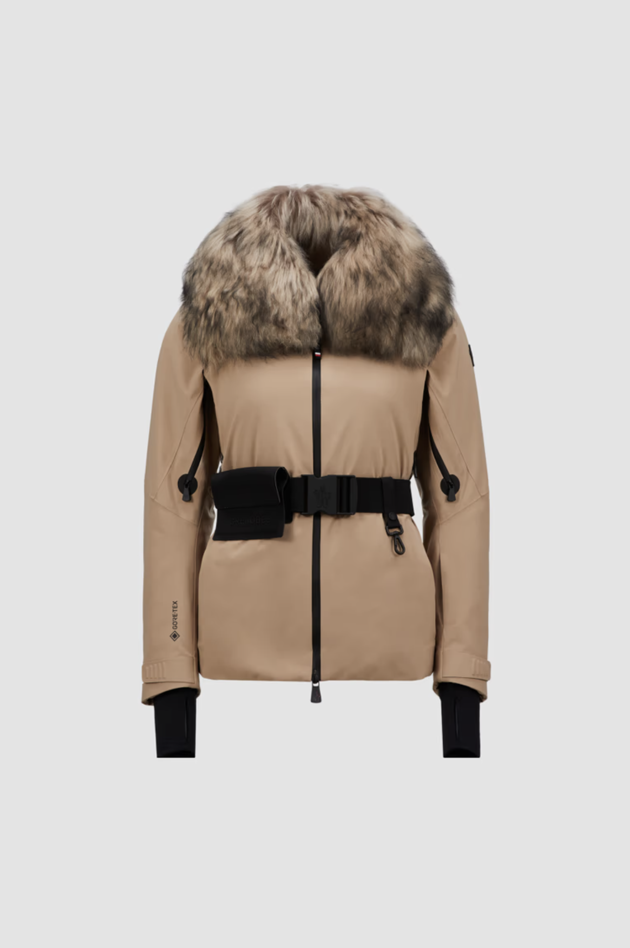 Experience unparalleled warmth and style with Moncler Grenoble's iconic white Vizeller down ski jacket. This jacket epitomizes sophistication on the slopes, featuring a luxurious black faux-fur collar. Crafted from weather-resistant GoreTex® fabric, it ensures protection against the elements while maintaining breathability for optimal comfort. The utilitarian detachable belt adds a touch of versatility, allowing you to tailor your look effortlessly. Elevate your winter adventures with the timeless elegance and superior functionality of the Moncler Grenoble Vizeller jacket (US $1,987).