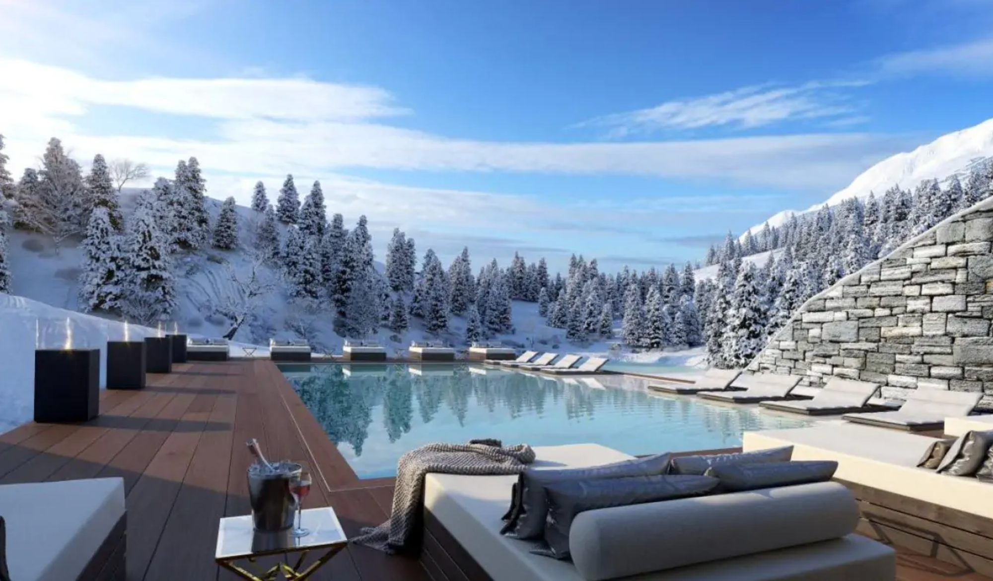 Ultima Crans Montana 1 is a remarkable mountain retreat in the esteemed Plateau de Plan-Mayens area of Crans-Montana. This architectural marvel boasts a coveted ski-in ski-out location overlooking the Les Planches ski run. A sprawling 41,441 sq. ft of living space epitomizes alpine luxury, blending high fashion refinement with ski lodge charm. The expansive living room exudes cosmopolitan glamor, complemented by a wood-burning fireplace and a lavish in-home bar. Eight double bedrooms and two children's dormitories accommodate up to 26 guests in style and comfort. The shared Ultima Spa & Clinic offers divine relaxation, while entertainment options include a cinema room, game room, and fully-equipped fitness and yoga studio. Outside, indulge in serene beauty with a luxurious Jacuzzi and sparkling swimming pool, creating an oasis of tranquility. Ultima Crans Montana 1 promises an unforgettable retreat amidst the Swiss Alps, where luxury and relaxation intertwine seamlessly.