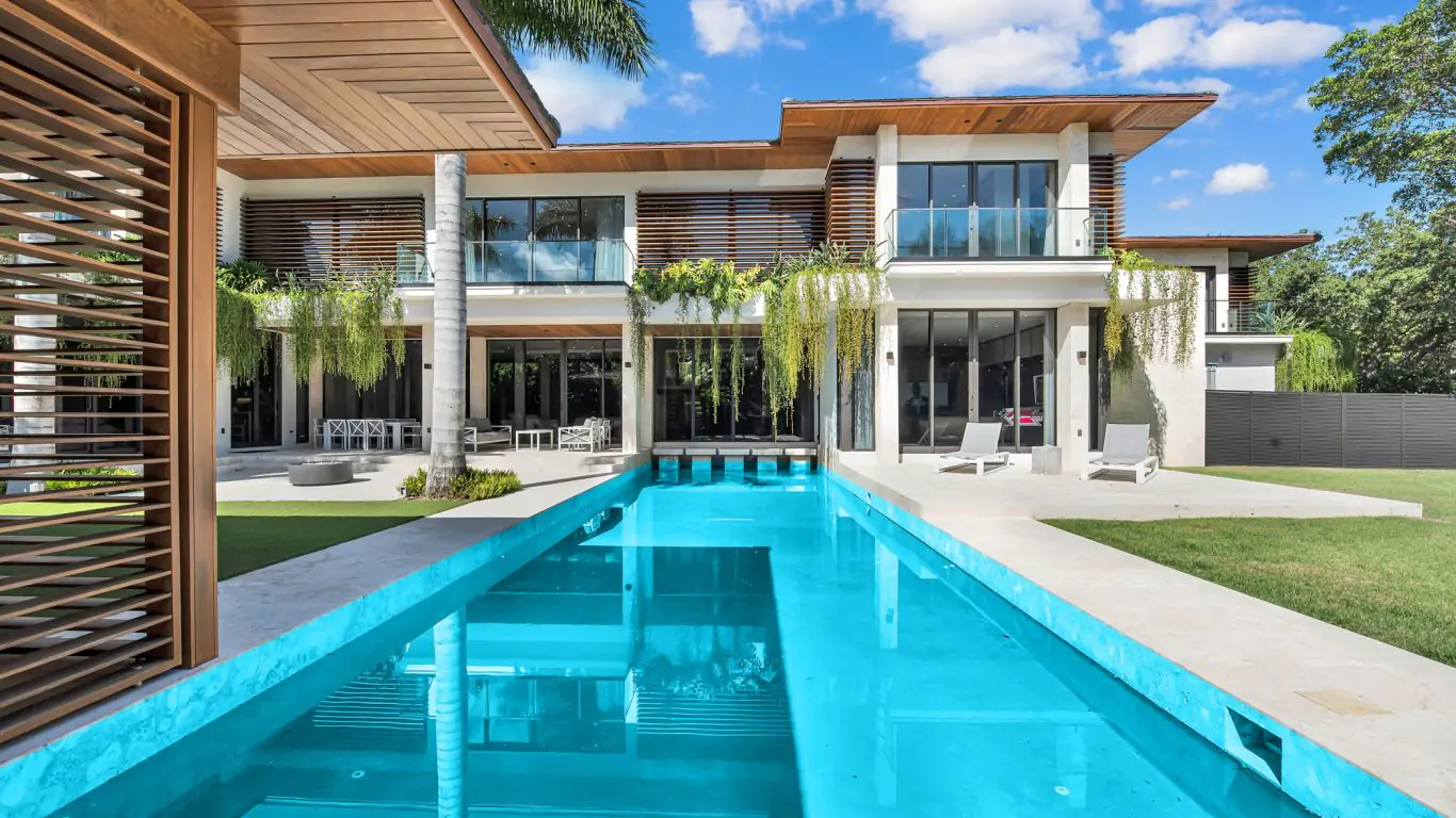The exclusive private Villa Delphis could be the perfect residence for your romantic trip. The breathtaking villa is located in the Bay Point estate, near downtown Miami and the world-renowned beaches. The luxurious home has six superbly designed bedrooms accommodating up to twelve guests. Each room has a spacious walk-in closet, glittering crystal chandelier, private terrace, and glass walls that reveal a captivating view. An additional ensuite bedroom, ideal for staff or younger guests, is also available. The villa’s stunning dining room and state-of-the-art game room are perfect for entertaining. A fully equipped gym and bar are also at the guests' disposal. The captivating garden is filled with lush tropical foliage. Enjoy the palm trees from the impressive modern pool deck with a jacuzzi and adjacent cabana.