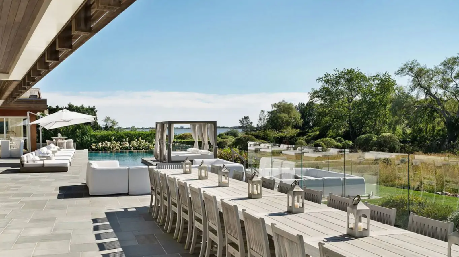 While having a full itinerary, a traditional Villa Mindie is an ideal choice for winding down and relaxing. Villa Mindie is an exquisite Water Mill estate offering unparalleled views and direct access to Mecox Bay. This palatial residence boasts luxurious amenities, including a heated infinity pool with a spa and waterfall, a private boat dock, and a rooftop tennis court. With its harmonious blend of opulence and nature, Villa Mindie ensures a sanctuary of tranquility and indulgence.
