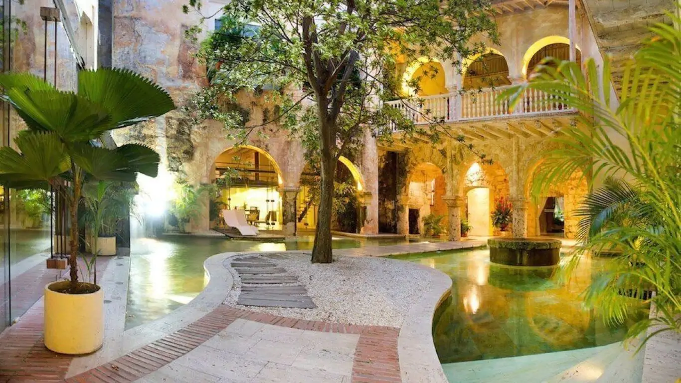 Casa Carolina offers the perfect retreat during your journey to Cartagena. This breathtaking historic estate showcases the grandeur of Spanish colonial architecture, nestled in the heart of the Colombian port city. Casa Pombo preserves its imperial history with exquisite detail, blending old-world refinement with contemporary elegance. With fourteen bedrooms adorned with private balconies and terraces, 28 guests have unparalleled luxury and comfort. The estate's lush veranda, vaulted ceilings, and original stone walls evoke a sense of timeless beauty, while modern amenities such as rooftop swimming pools and serene internal patio pools provide a tranquil oasis amidst the vibrant cityscape. Casa Pombo's rooftop mirador not only provides exceptional views of lush tropical foliage but also offers captivating vistas of the charming old town of Cartagena, creating an unforgettable city-view experience for guests.