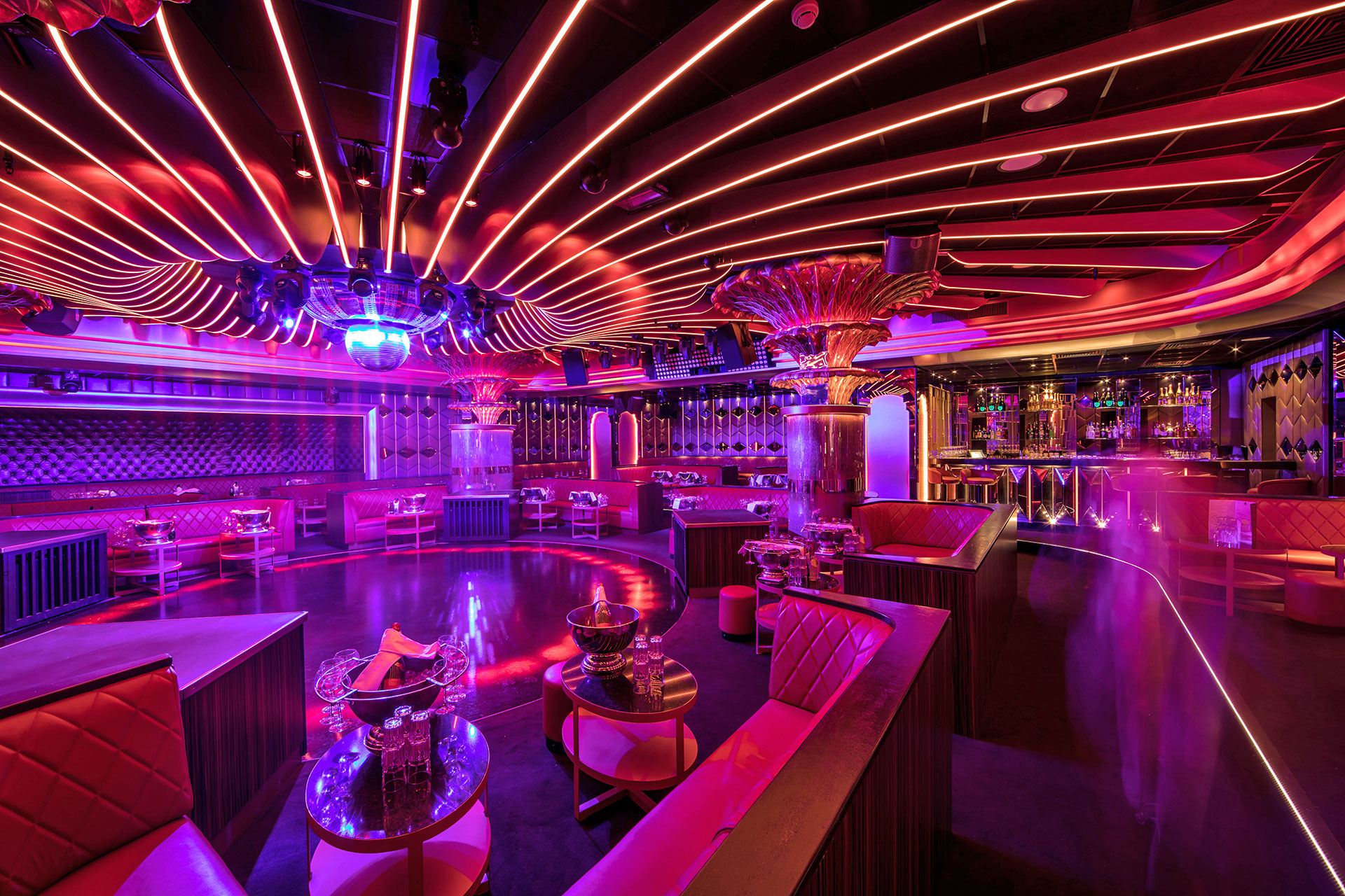 Tsar Folies lounge bar welcomes guests in a warm and festive atmosphere. The club is decorated with neon and LED lights giving the space a cool vibe. Couple that with great music and out-of-this-world cocktails and guests have a pretty sweet spot to party