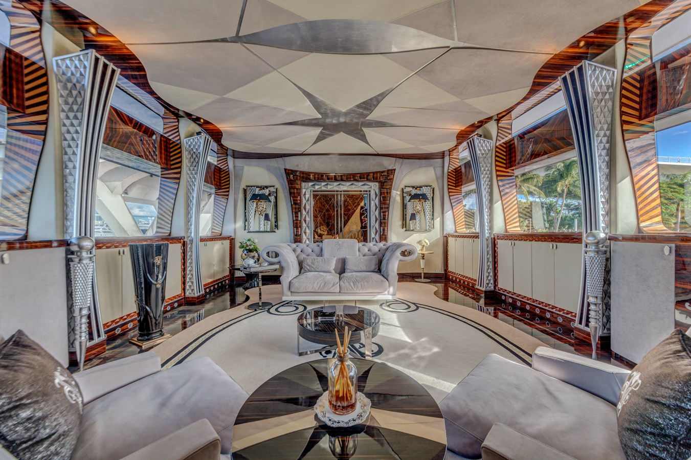 - Indoor-outdoor aft dining with retractable doors and panoramic views