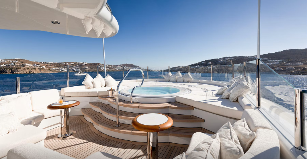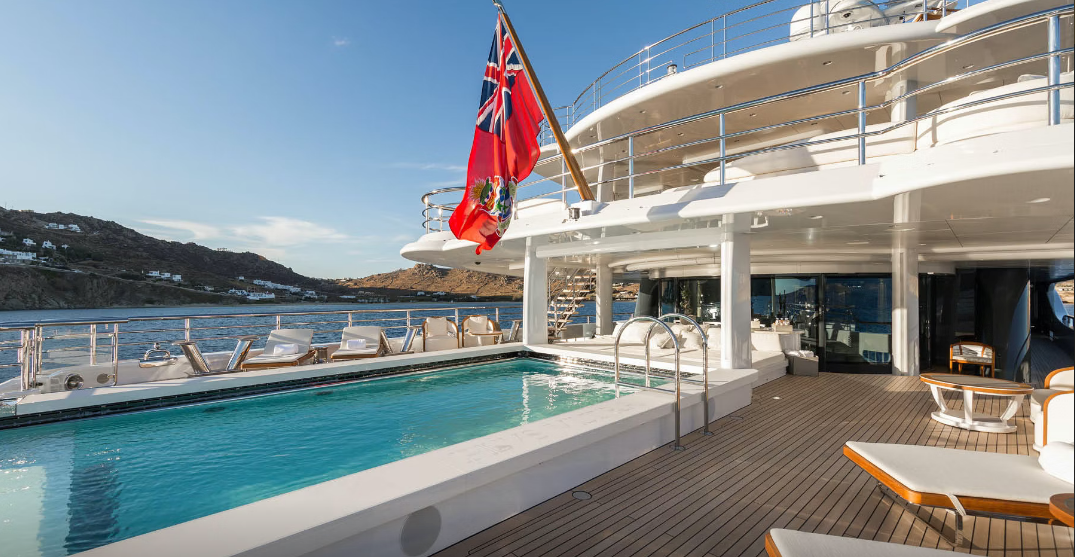 The astounding megayacht also has a swimming pool, Jacuzzi in the spa, Jacuzzi on the sundeck, beach club, gym, spa, steam room, hammam, and tender garage. She is on the market for US$95 million.
